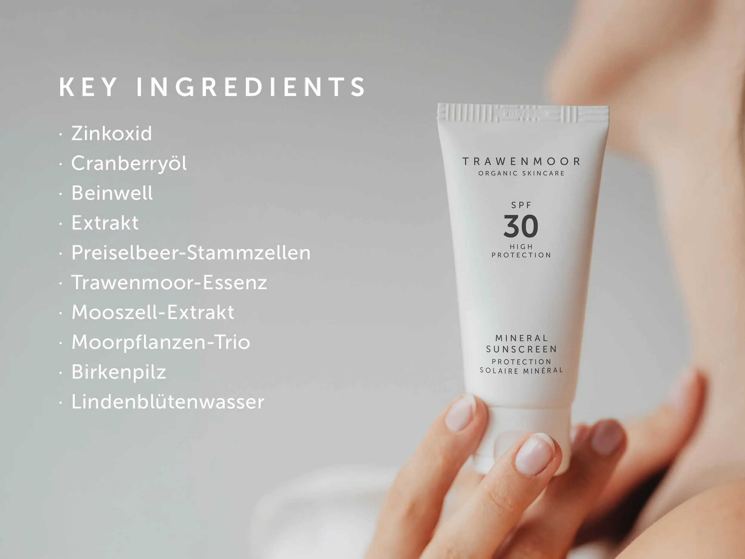 The Zinc Oxide-based mineral UV filter reliably protects the skin with integrated broad-spectrum UVA/UVB protection and helps prevent photoaging and hyperpigmentation. The combination of Stem Cells from Cranberries and Cranberry Oil has an anti-oxidant effect, helps defend against free radicals, strengthens the skin’s microbiome and boosts moisture, firmness and elasticity. The skin is additionally protected against IR radiation and blue light, while the formation of wrinkles and pigment spots is prevented. Comfrey has a smoothing and soothing effect and ensures a long-lasting feeling of well-being.